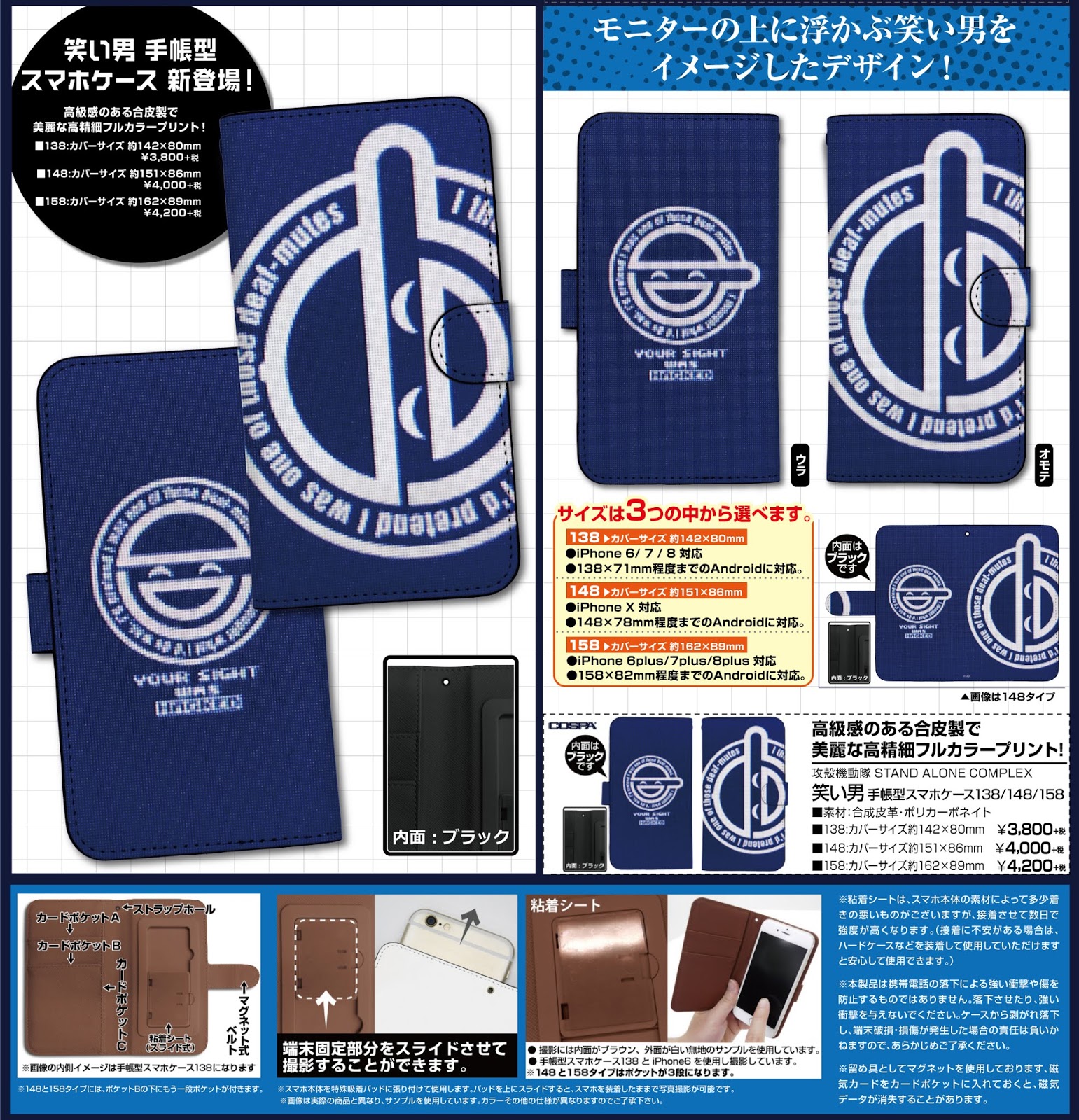 Rev 代購 預購 攻殻機動隊stand Alone Complex 笑い男手帳型スマホケース3種 Ghost In The Shell Stand Alone Complex The Laughing Man Book Type Smartphone Case