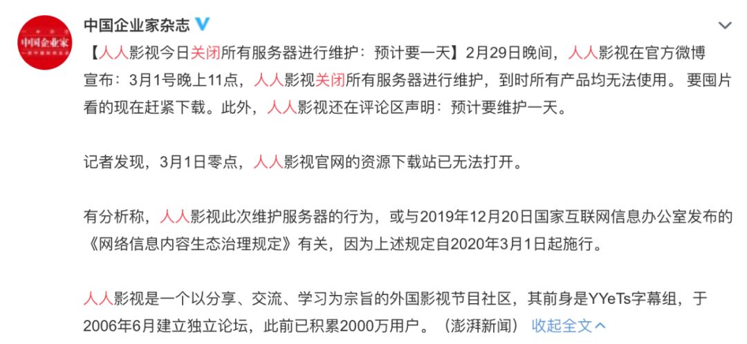 人人影视服务器又关闭了 做字幕组有多不容易 详细解读 最新资讯 热点事件 36氪