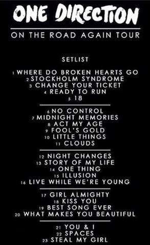 Updates1d X3 On Twitter Complete Setlist For The U S And Canada Leg Of On The Road Again Tour Http T Co Jxftggvynr